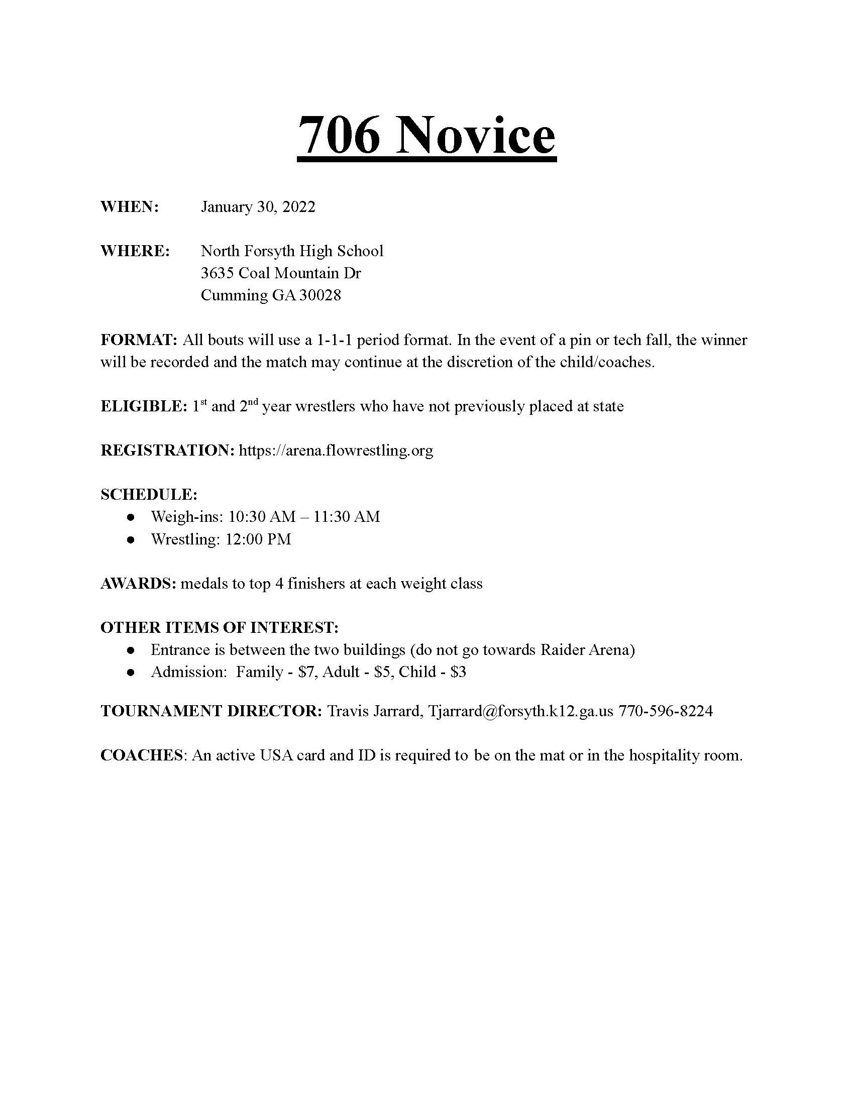 Novice events are only for wrestlers who are 1st and 2nd-year wrestlers and have not placed at Kids State or National level events.