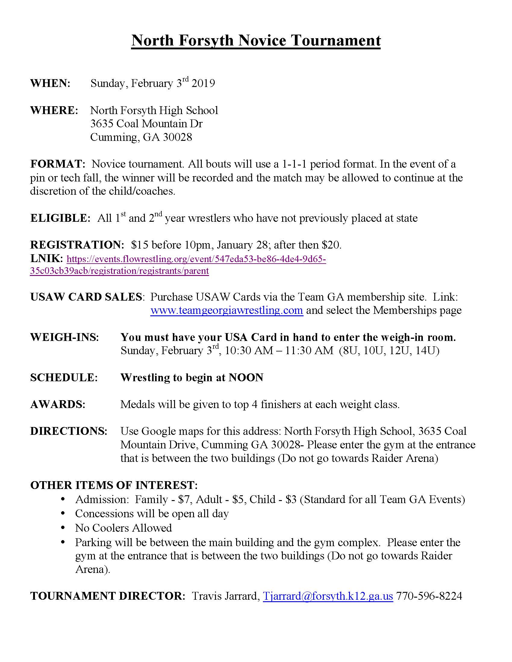 wrestler at novice tournaments, one of the registrations will be