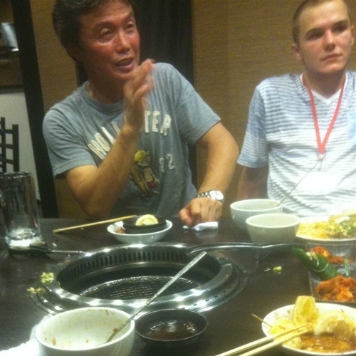 Just as we were walking out of the wrestling room, Coach Sato grabbed ahold of us and asked us if we liked barbeque, to which we all quickly said 'yes'. He told us that he would take us to a place along with Ray Suzuki, a 1990 graduate of Lehigh who is of Japanese heritage and lives here in Tokyo. We all quickly grabbed a shower and met up with our two companions to head over to the restaurant.
