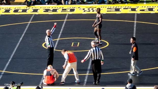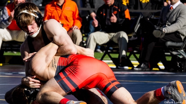 This looks like Iowa dominated the action. In spots they did, but five of the nine stall calls came against OSU on the boundary line. Coach Brands stated in his post match press conference that they had practiced how to wrestle the boundary situations and it paid off.