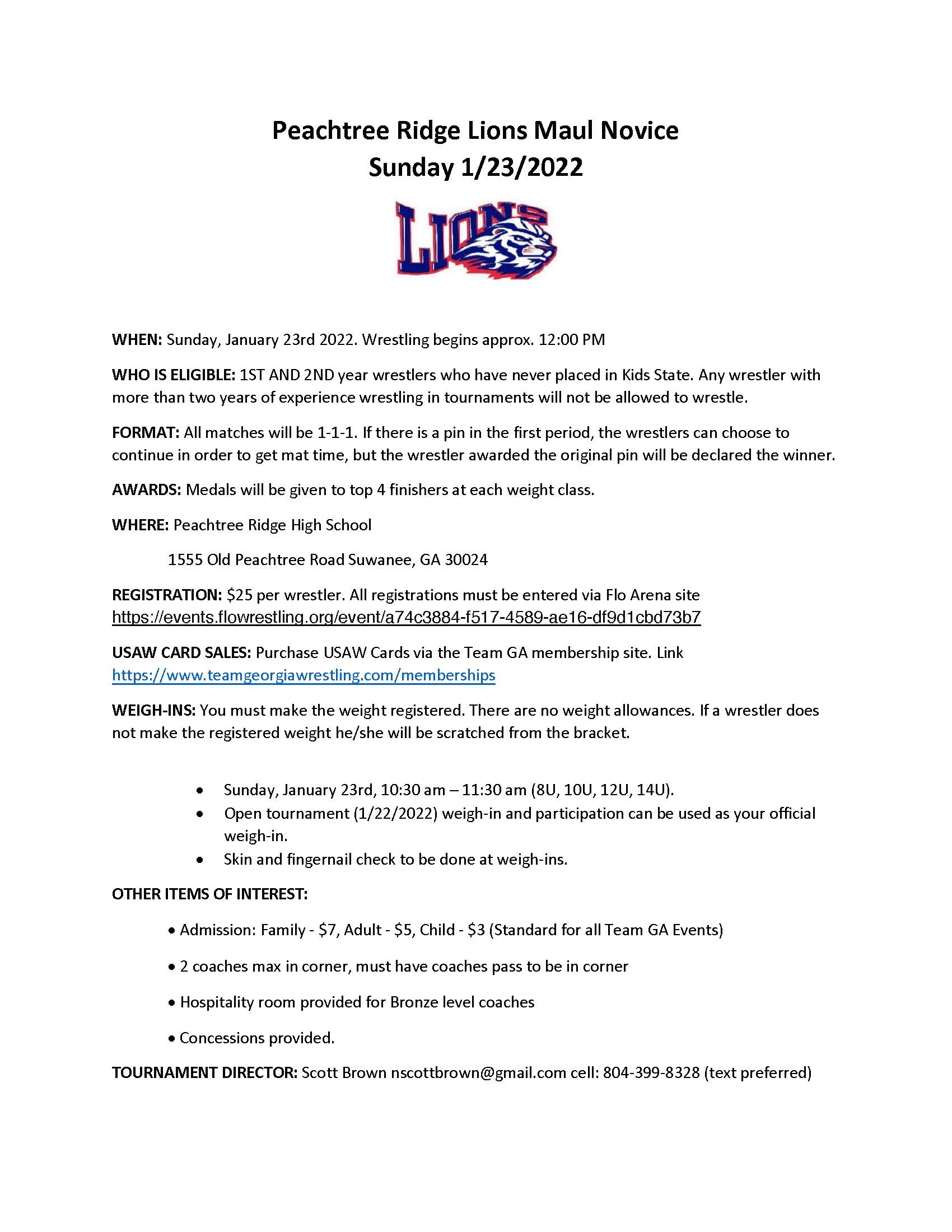 Novice events are only for wrestlers who are 1st and 2nd-year wrestlers and have not placed at Kids State or National level events.