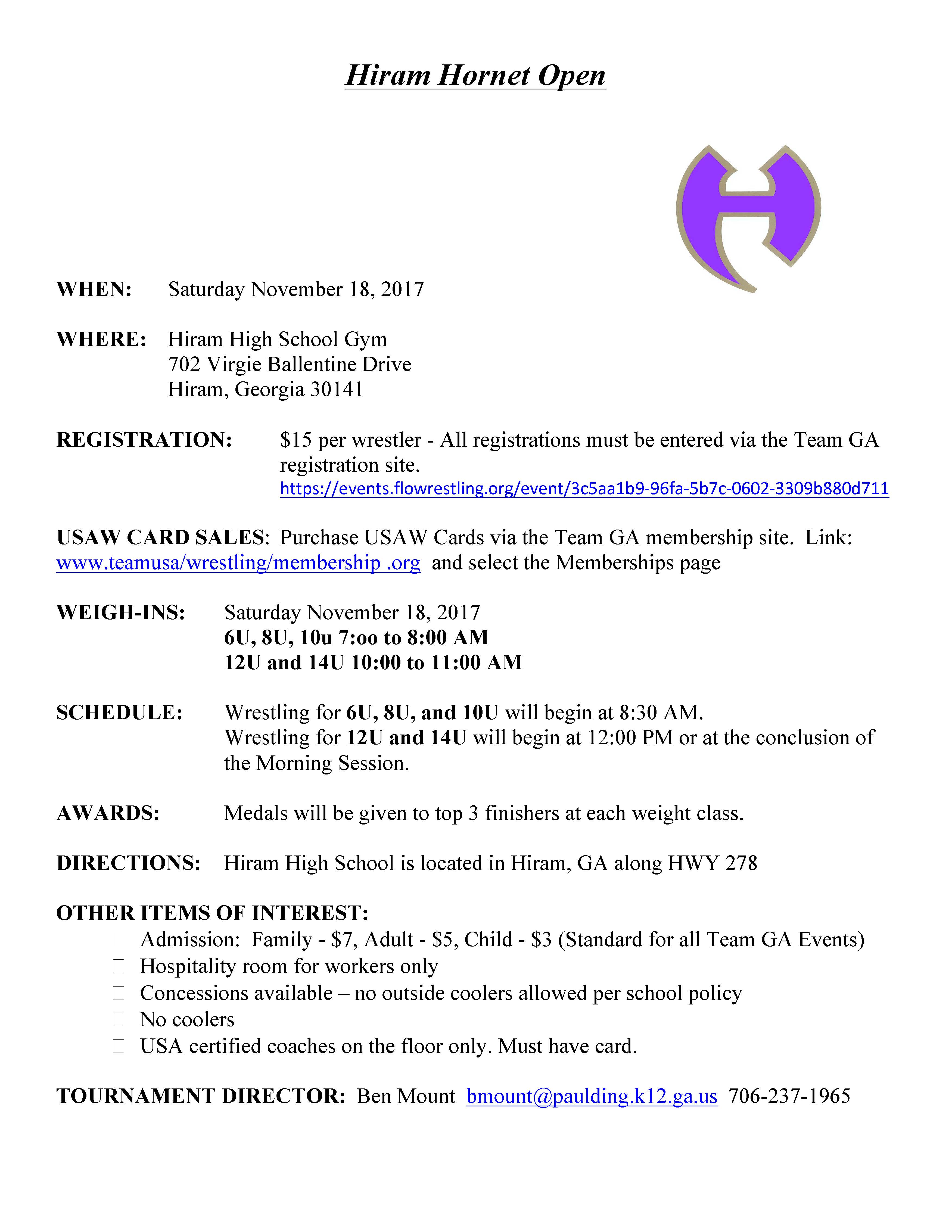 Hiram Hornets Open on Nov 18, 2017 in Hiram, GA.