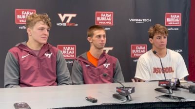Virginia Tech's Andy Smith, Sam Latona and Bryce Andonian discuss their incredible dual meet victory over ACC rival NC State. What was Smith thinking in the third period with Trumble? How important was it for Latona to set the tone? When did Andonian know he was going to wrestle? Find out in this press conference!